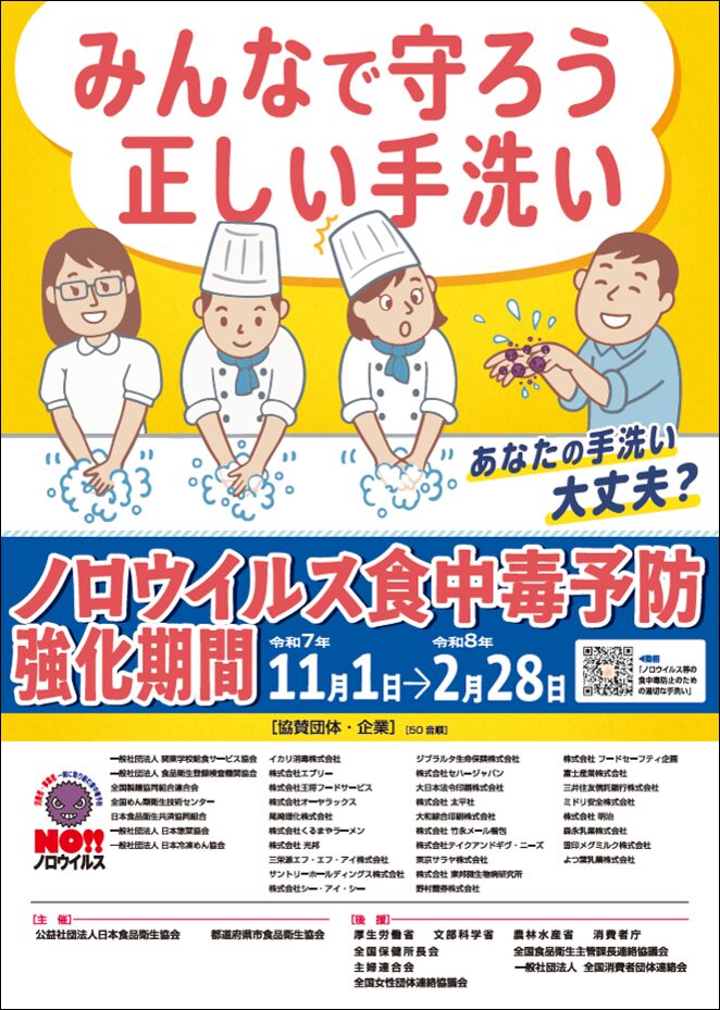 11月から2月までの4か月間を「ノロウイルス食中毒予防強化期間」と定めています。